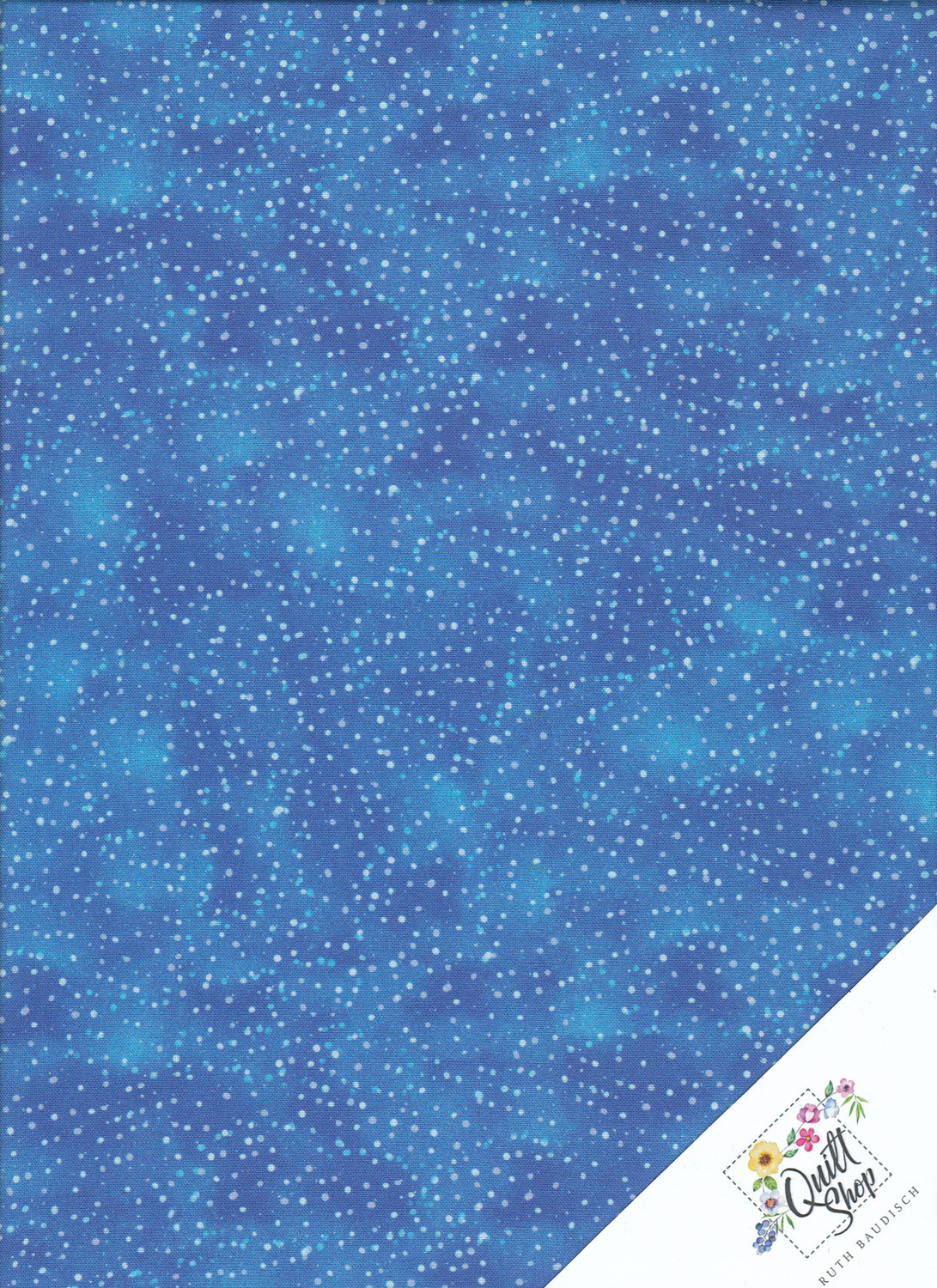Zauberhafter Patchworkstoff blaugrundig, allover bedruckt mit Dots, Punkte, Tupfen, Schneeflocken.