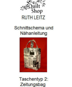 Zum Zeitungsstoff (0,5 m) gibt es eine Anleitung mit verkleinertem Schnittschema für den abgebildeten Zeitungsbag für € 2,-.
